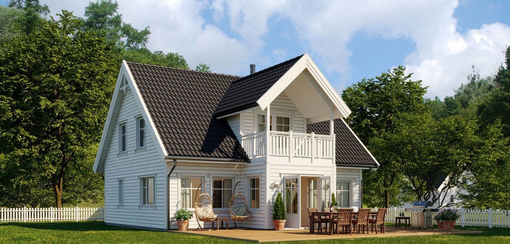 I andre etasje finner du tre soverom, bad, bod og en koselig loftstue med utgang til balkong. Huset kan leveres med kjeller, og deler av stuen kan også gjøres om til et soverom i første etasje.
